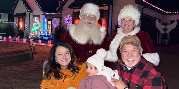 Over the last few years Facebook has been a way to chat and visit...As age and time turned my beard white , and a daughter asked me if I'd put on a red suit for her school..well that grew and Earl was lighting up Oklahoma in December.So we reconnect over December activities that we both Love.That brought on a couple of trips to Oklahoma. Sitting out taking Santa and Mrs C. Pictures in Earl and Lori's yard.Lots of Smiles Great time Earl taking pictures and sharing with the neighbors.